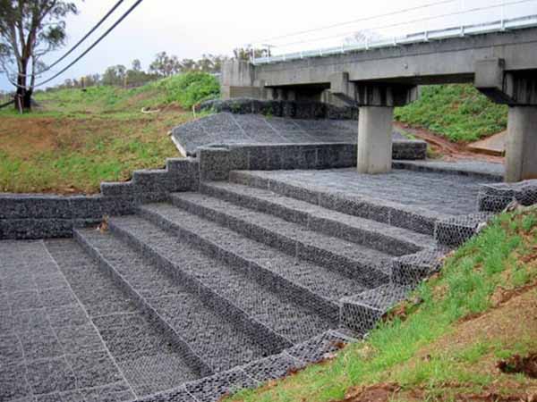 雷諾護(hù)墊是指由機(jī)編雙絞合六邊形金屬網(wǎng)面構(gòu)成的厚度遠(yuǎn)小于長(zhǎng)度和寬度的墊形工程構(gòu)件,其中裝入塊石等填充料后連接成一體,成為主要用于水利堤防、岸坡、海曼等的防沖刷結(jié)構(gòu),具有柔性、對(duì)地基適應(yīng)性的優(yōu)點(diǎn)。